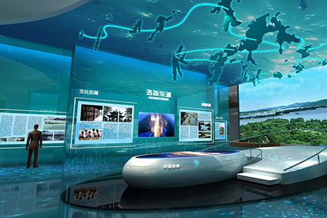 MORE >>互動滑軌屏又稱滑軌電視,它將相對枯燥的文字信息展示在視頻上,減輕了解說員滿場解說的負擔,參觀者能夠一目了然的了解產(chǎn)品信息。